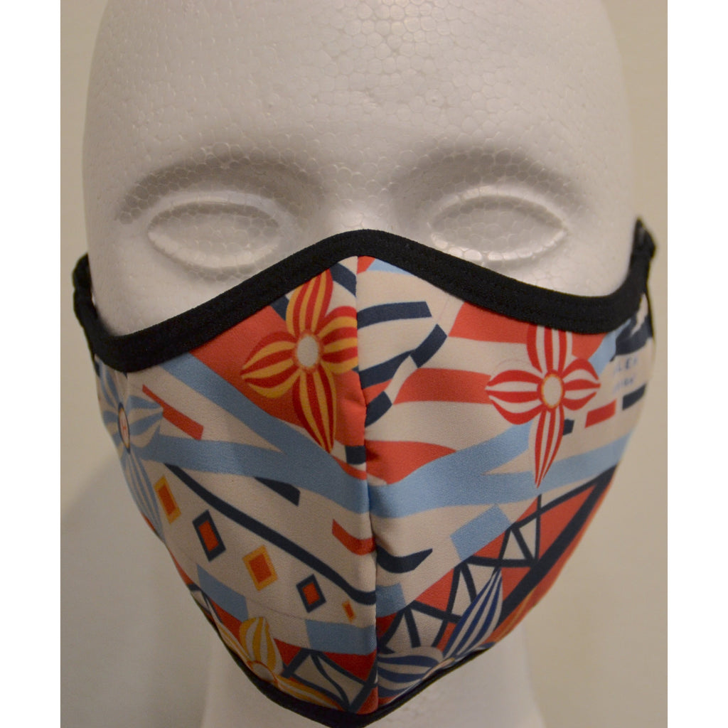 Printed with an exclusive custom graphic print available in multiple colorways, our fitted face masks are made with an anti-fluid fabric with 85% repellency against particles and liquids and 100% cotton lining. The all-natural fabrics are breathable and hypoallergenic for the utmost comfort. A contrast trim and adjustable sidebands ensure a tailored fit. Using our reusable mask reduces environmental impact 15 times compared to disposable face masks.