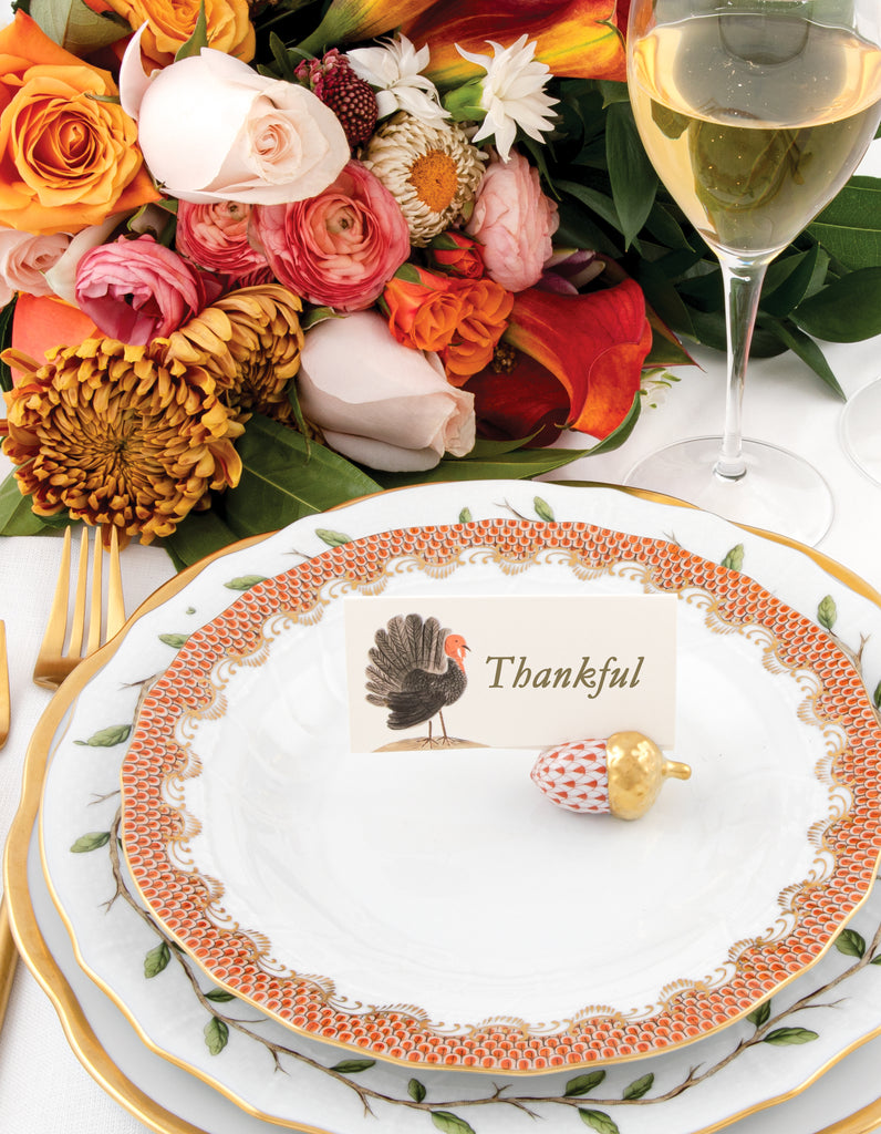 Herend Acorn Place Card Holder Figurine for your holiday dinner table.