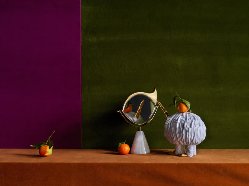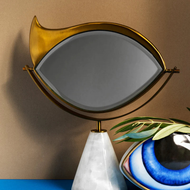 A surrealistic “talisman” of good luck and a traditional symbol of protection, the eye serves as a constant reminder to be aware, to dispel negative energy, and to seek beauty in the everyday. The eye is also a point of connection between two souls. L’Objet + Lito is a celebration of that connection, between two creators, inviting you to see design in a whole new light. Whimsical and surreal decorative objects are handcrafted in porcelain with 24-karat gold plating and inlaid with resin details.