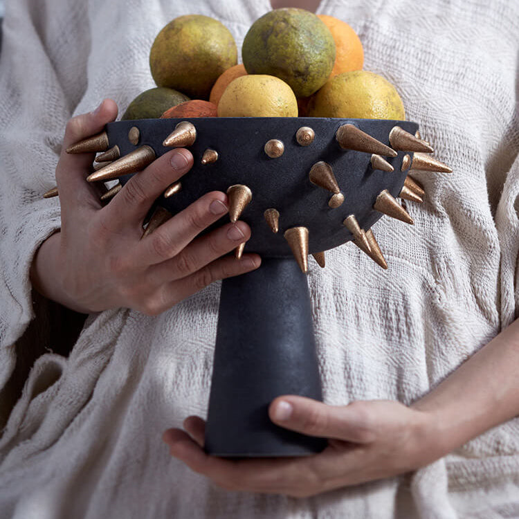 The L’OBJET Haas Brothers collection is a meeting of imaginative minds and skilled hands. Inspired by the otherworldly landscape of Joshua Tree, Los Angeles-based artists Simon and Nikolai Haas worked in close collaboration with the master craftsmen at L’OBJET to create a collection that spans tableware, home décor, textiles, and fragrance. Together, they have brought to life a family of characterful creatures with the highest quality of finish and function. These are objects to be cherished. In using them, everyday moments become memorable; the ordinary becomes extraordinary. This iconic monster creates a fantasy-filled ceremony for serving beverages. Available in black or white porcelain hand-carved into pillowy, undulating waves of fur and outfitted with opulent 24K gold lips and feet.