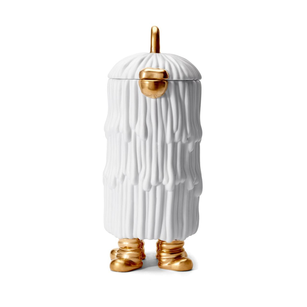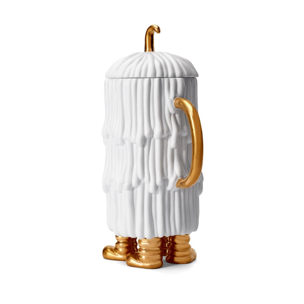 The L’OBJET Haas Brothers collection is a meeting of imaginative minds and skilled hands. Inspired by the otherworldly landscape of Joshua Tree, Los Angeles-based artists Simon and Nikolai Haas worked in close collaboration with the master craftsmen at L’OBJET to create a collection that spans tableware, home décor, textiles, and fragrance. Together, they have brought to life a family of characterful creatures with the highest quality of finish and function. These are objects to be cherished. In using them, everyday moments become memorable; the ordinary becomes extraordinary. This iconic monster creates a fantasy-filled ceremony for serving beverages. Available in black or white porcelain hand-carved into pillowy, undulating waves of fur and outfitted with opulent 24K gold lips and feet.