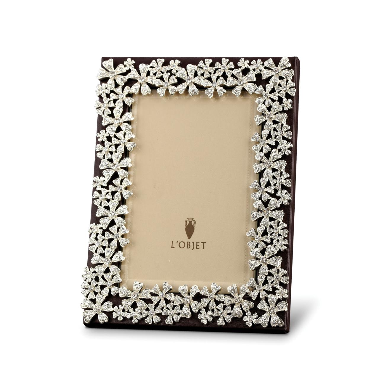 L'Objet Rectangular Pave Frame Collection with a beveled glass front and leather backing.