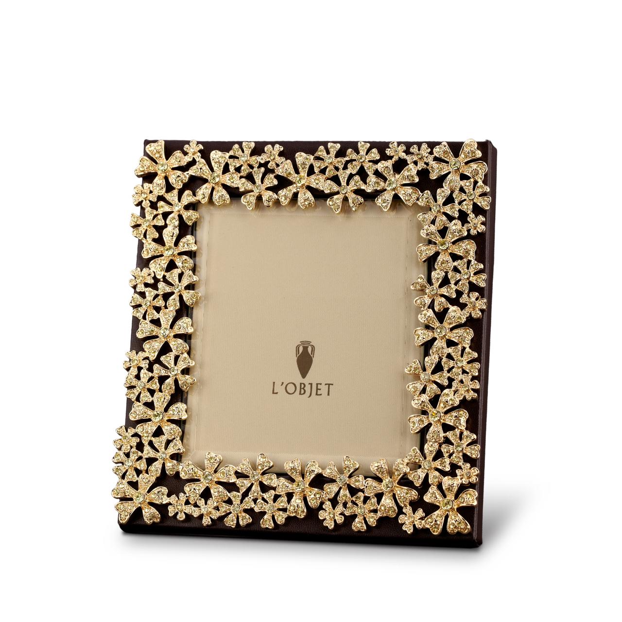 Timeless and refined picture frame design meticulously handcrafted with 24K gold and platinum plating, beveled glass, satin lining and Italian leather and suede backs with beautifully detailed closures. Presented in a luxury gift box.