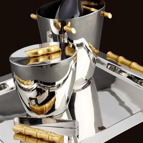 Combining organic elements with a clean, modern aesthetic, Bambou is a unique expression of style and simplicity. Hand-gilded 24K gold-plated bamboo are brilliantly incorporated into each piece and dramatically reflected in polished stainless steel.
