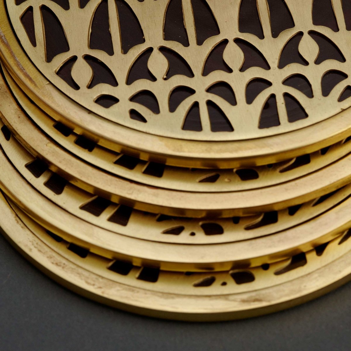 L'Objet Crocodile Antiqued Brass Coasters come as a set of 4 and are meticulously handcrafted in antiqued brass. These coasters are rich in natural texture and global in design.