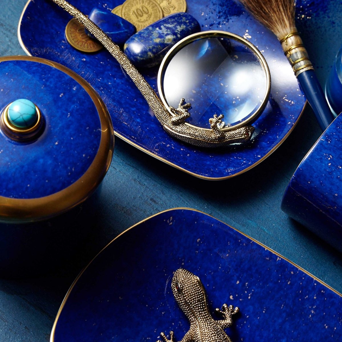 The night sky has entranced stargazers and inspired artists for millennia. Lapis, part of our 10th anniversary collection, celebrates the mesmerizing skies above the Mediterranean, an azure of incredible depth in variation and tone. Made of Limoges porcelain and earthenware with hand-gilded 24K gold accents