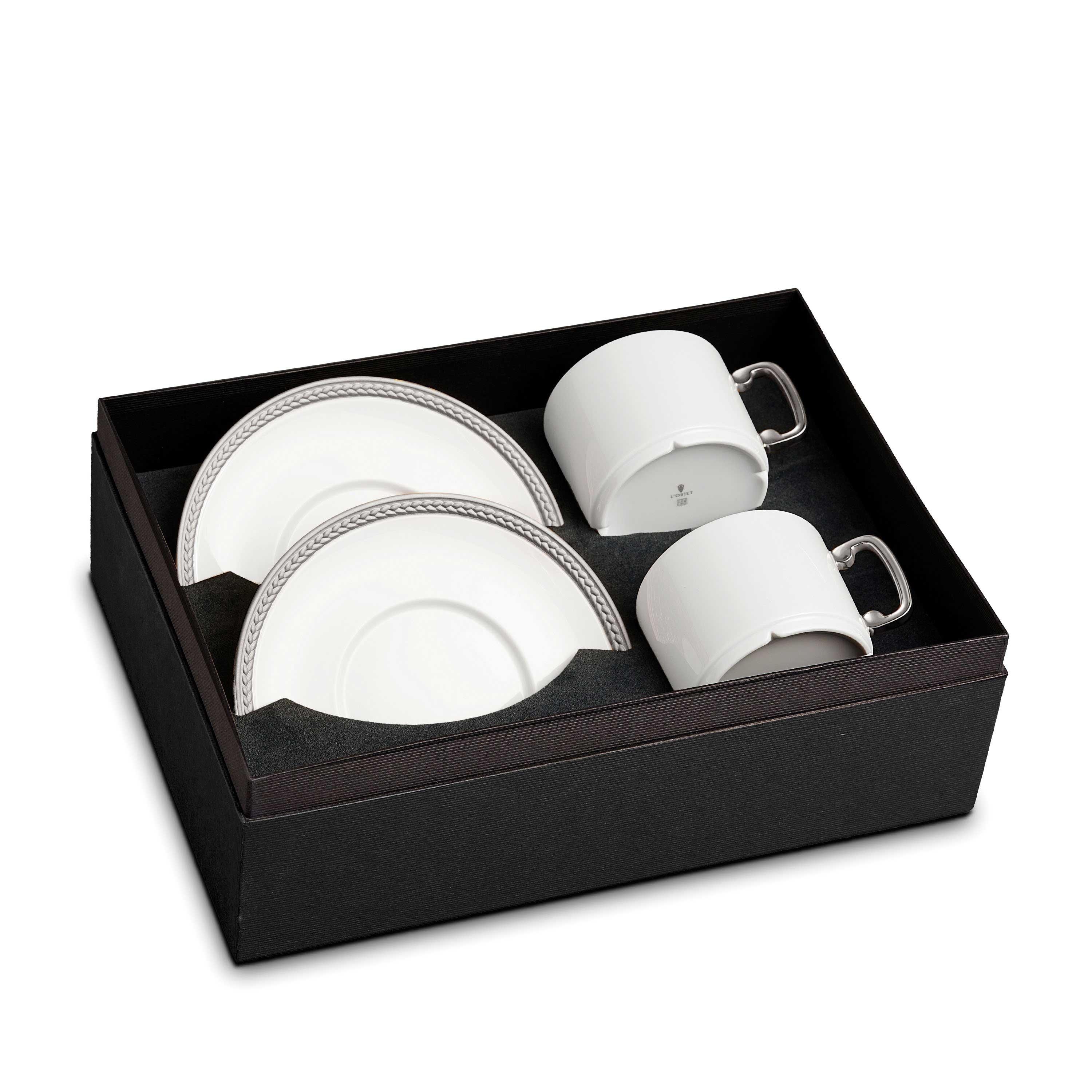 L'Objet Platinum Soie Tressée Tea Cup + Saucer (Set of 2)