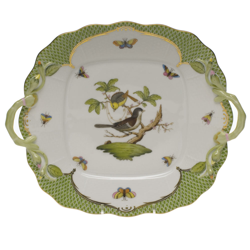 Herend China Rothschild Bird Green Square Cake Plate With Handles