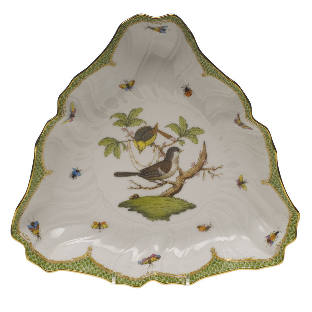 Herend China Rothschild Bird Green Border Triangle Dish 9.5"L