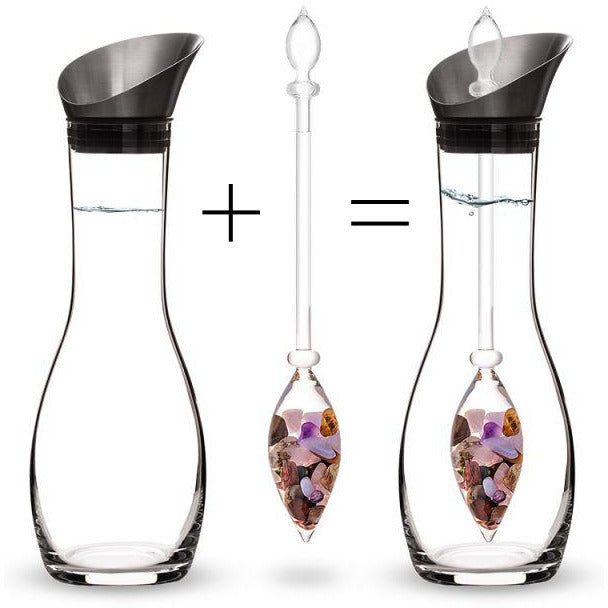 A hand-made glass vial with a selection of crystals to restructure your drinking water. Jewelry for your water! Good for