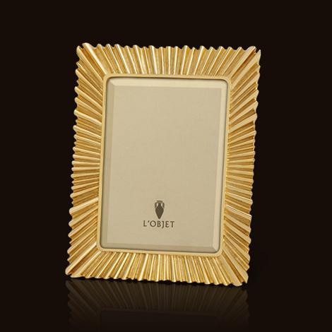 A bold, luxurious picture frame design meticulously handcrafted with 24K gold plating, beveled glass, satin lining and Italian leather and suede backs with beautifully detailed closures. Presented in a luxury gift box.