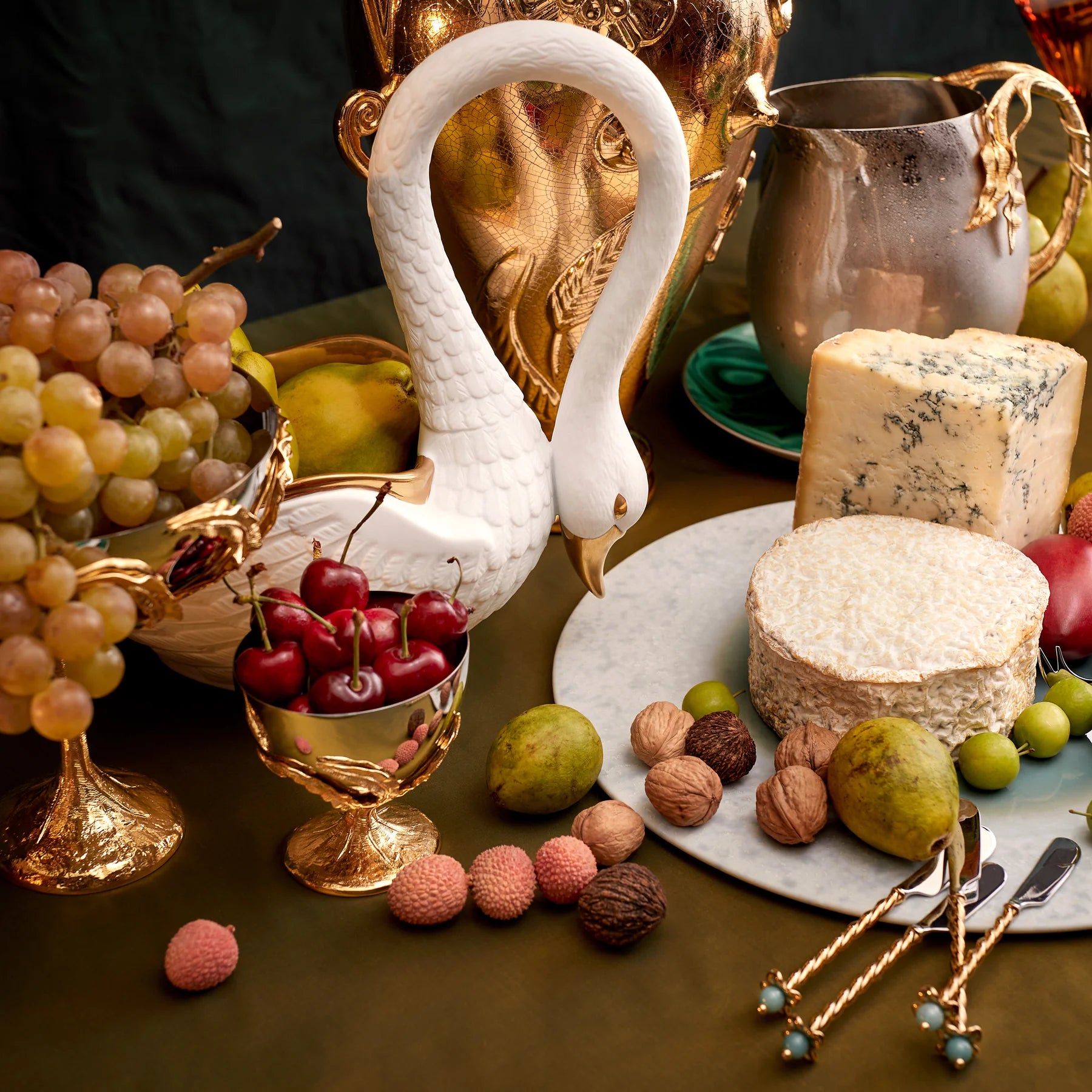 Inspired by the highly sculptural and beautifully detailed porcelain of the 19th century Empire period, the Swan bowls proudly nod to antiquity with unmistakable modern grace. From the luminescent, hand-gilded 24K gold of the bowl to the silky feathers on the curve of the neck, each piece is a singular and exquisite work of art, sculpted and finished entirely by hand. Available in white and black.